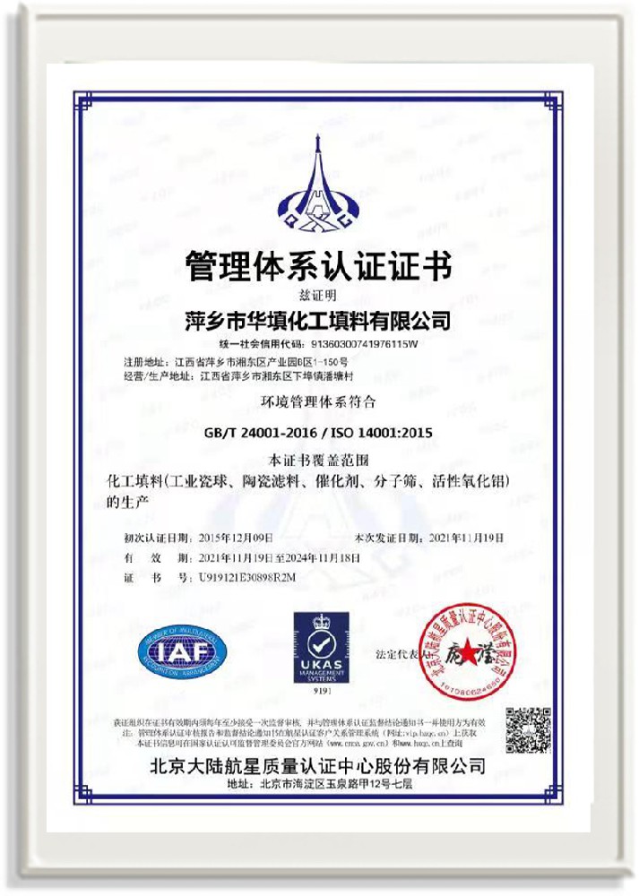 萍鄉(xiāng)市華填化工填料有限公司,位于320國道、109國道、浙贛鐵路、昌金高速公路貫穿其中,交通便利,是江西西部一顆燦爛明珠,創(chuàng)建于20世紀(jì)70年代初期,是中國石油天然氣股份有限公司“能源一號網(wǎng)”會員企業(yè)、中國石化物資采購電子商務(wù)網(wǎng)絡(luò)和中國海洋石油總公司采辦業(yè)務(wù)系統(tǒng)成員單位,是上海大學(xué)江西材料基因組工程產(chǎn)業(yè)研究院工業(yè)陶瓷產(chǎn)業(yè)創(chuàng)新聯(lián)盟基地,且通過ISO9001:2015質(zhì)量管理體系、ISO14001:2015環(huán)境管理體系、ISO45001:2018職業(yè)健康安全管理體系認(rèn)證的化工填料生產(chǎn)企業(yè)。公司擁有陶瓷、塑料、金屬填料、催化劑、活性氧化鋁、分子篩等產(chǎn)品生產(chǎn)線,現(xiàn)有固定資產(chǎn)3616萬元,占地面積3.8萬平方米。公司具有悠久的生產(chǎn)歷史、雄厚的技術(shù)力量和先進(jìn)的生產(chǎn)工藝設(shè)備,可生產(chǎn)工業(yè)瓷球(支撐劑)、陶瓷、金屬、塑料質(zhì)的規(guī)整、散堆化工填料及分子篩、催化劑、生化濾料、活性氧化鋁、石化助劑、活性炭、環(huán)保材料、耐火材料等系列的200多種規(guī)格型號產(chǎn)品。